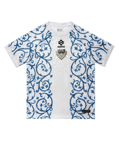 Das Latina Auswärtstrikot 2025/2026 verbindet Fußball mit Kunst und Kultur. Das Design wurde von den dekorativen Elementen einer seltenen historischen Flagge inspiriert, die in den Archiven von Venedig aufbewahrt wird. Die orientalischen Blumenmotive dieser Flagge, die auch auf der Markusflagge erscheinen, symbolisieren das Zusammentreffen verschiedener Kulturen und die Raffinesse künstlerischer Traditionen.