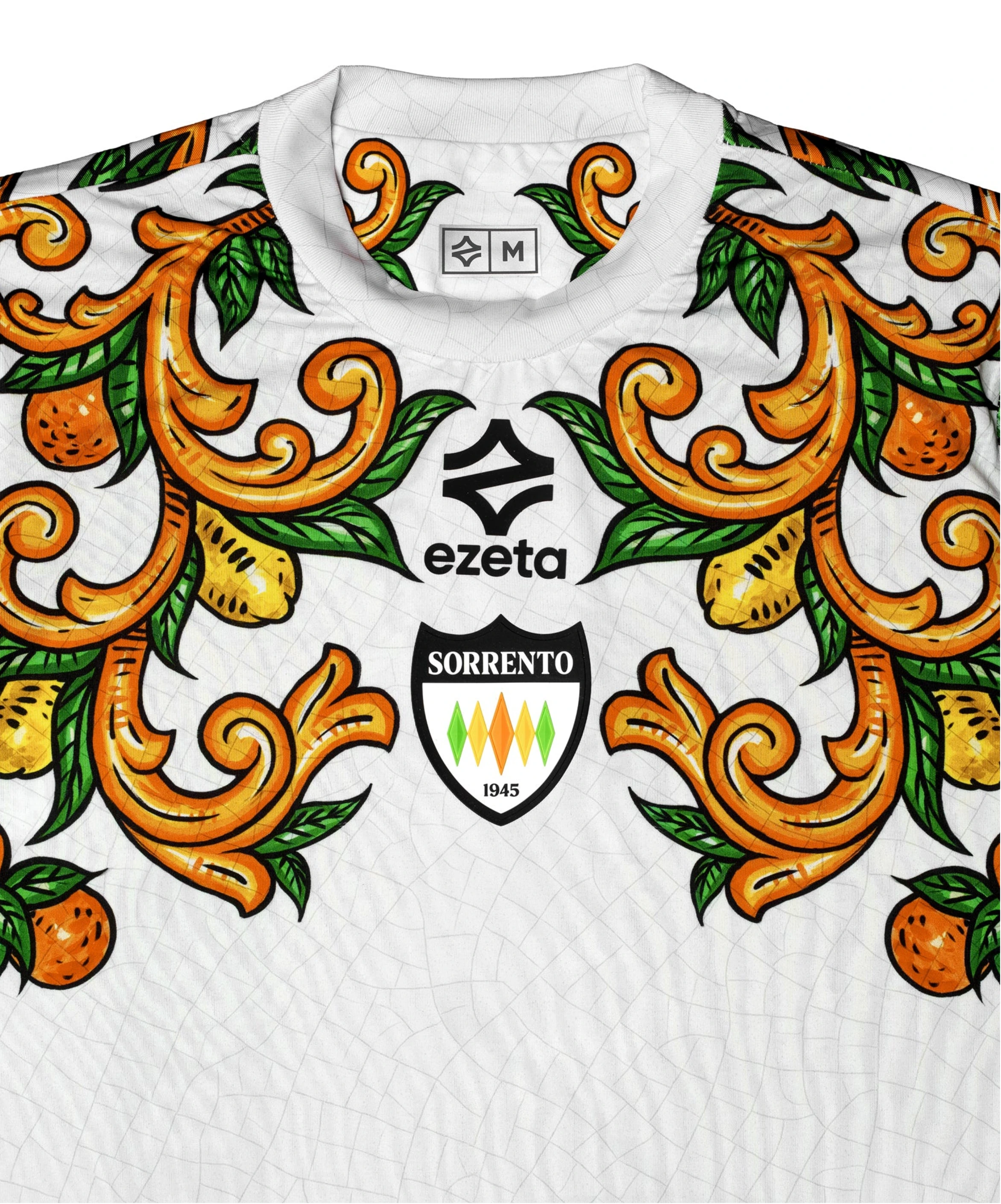 Los vibrantes tonos del amarillo de los limones, el naranja y el blanco de la luz del sol se entrelazan para transmitir el auténtico espíritu de Sorrento. Esta segunda equipación no solo destaca por su estética única, sino que también representa la esencia de una ciudad costera llena de historia y elegancia.