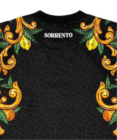 El diseño de la camiseta de portero Sorrento se inspira en las icónicas mesas de piedra pintadas a mano de Sorrento, decoradas con motivos naturales típicos de la zona. Los patrones reflejan la rica tradición artesanal y la estética de la región, otorgando a la camiseta un carácter artístico único.